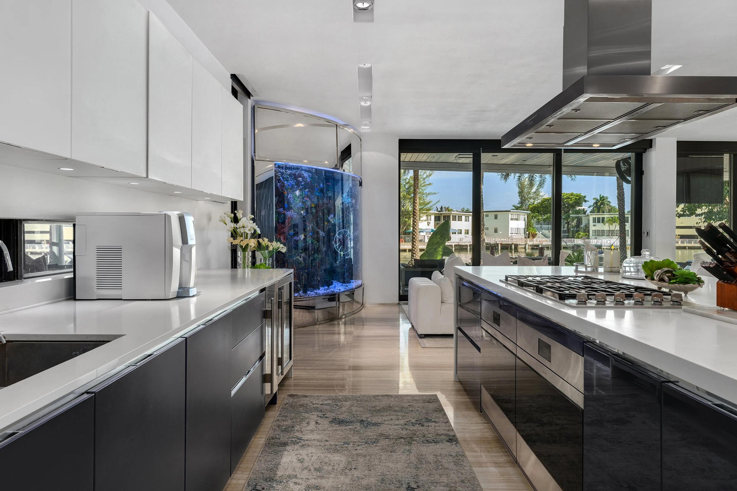 In the heart of Miami Beach’s exclusive Lakeview enclave, 528 Lakeview Ct stands as a breathtaking vision of contemporary luxury, presented by Shawn Elliott of Nest Seekers International. This tri-level waterfront masterpiece, set on a 17,676 SF gated lot with 90 feet of Intracoastal frontage, spans 9,424 total square feet, weaving 5 bedrooms and 7.5 bathrooms into a seamless blend of architectural daring and refined elegance. Floor-to-ceiling glass walls erase boundaries, flooding expansive living, dining, and family spaces with radiant light and framing captivating water vistas. Polished marble and rich hardwood floors flow beneath intricate custom millwork, while a built-in aquarium pulses with life, echoing the ocean’s allure.